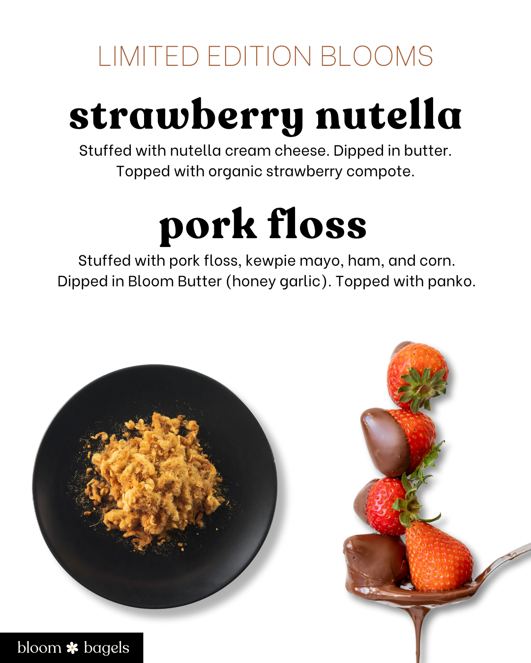 Stuffed with corn, Kewpie mayo, scallions, and mozzarella. Dipped in Bloom Butter and topped with mozzarella. (contains eggs)